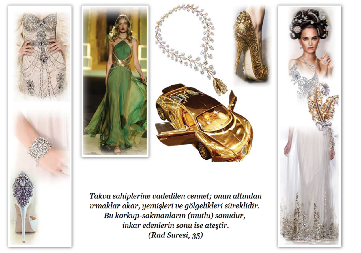 Örneğin, son model bir arabaya sahip olmayı şiddetle arzulayan bir kişi düşünün. Büyük çabalar sonucunda kavuştuğu arabanın, çok geçmeden yeni modelleri çıkacaktır ve bunlar kendisine daha cazip hale gelecektir. Veya bu kişinin, senelerce para biriktirip, emek harcayıp bir eve sahip olduğunu düşünün. Bir gün mutlaka kendisininkinden daha güzel bir evle karşılaşacak ve kendi evine olan ilgisini kaybedecektir. Satın aldığı bu malların eskiyerek, bozularak, tahrip olarak kendisine vereceği sıkıntılar ise apayrı bir acıdır.